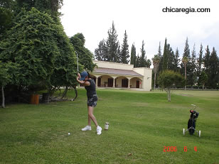 Luego al siguiente día tempranito, fuimos a jugar golf. Nunca había jugado, sólo cuando podía, veía en TV el PGA Channel y pues me entretenía mucho. Como aquí en Cadereyta hay campos de golf, pues voy a tratar de ir los fines de semana que pueda a jugar; mientras, me consigo los palos de golf para mujeres. Quién quita y sea la próxima Lorena Ochoa.