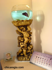 Ésta era mi escultura con la pecera bola que tenía en mi sala. Bueno, viéndolo por el lado amable, tengo chance de cambiar de modelo de escultura jeje
