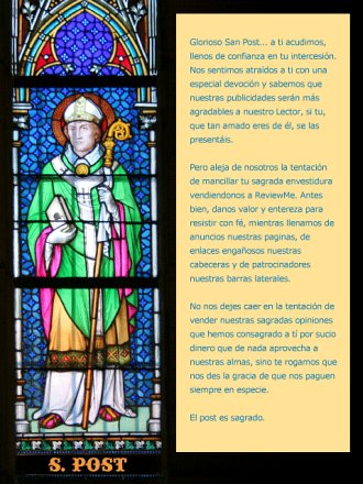 Primero voy a poner esta estampita que estuvo circulando por varios blogs el año pasado, donde aparece San Post y su oración. La fuente original no la tengo es Armando Sosa.