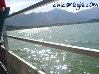 En el lugar hay eventos, además de la venta de comidas, souvenirs, licores y demás. También están disponibles la renta de lanchas, motos y caballos. Nosotros tomamos un paseo por la Presa, mientras veíamos el paisaje y una buena platicada. En la foto de abajo estamos Cynthia, Juanita y yo.