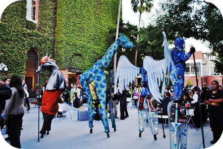 Entre las cosas llamativas, estaba un show de personajes en zancos, que hacían del ambiente algo muy especial.
