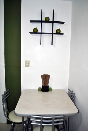 area de desayunoHe estado algo entretenida porque como aún me queda mucho café de grano (y yo no soy cafetera jeje), quise seguir haciendo cositas para decoración. Por cierto, ya terminé de decorar mi área de desayuno, solo le puse mi gatito de manzanas verdes y pintura color verde en un muro angosto que se encuentra en esa área.
