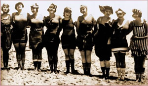 Desde finales del siglo XIX y principios del XX se define lo que es un traje de baño. Era prácticamente el mismo para hombres y mujeres, constaba de un camisón y un short que tapara los muslos.