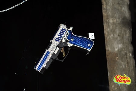 Más adelante me llamó la atención que también vi armas con piedras preciosas.