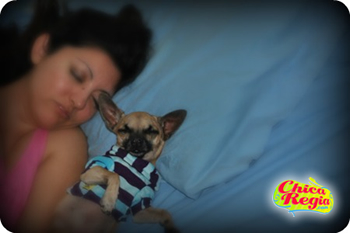 Una noche mientras estaba dormida, Pabo se subió a mi cama y se acostó a un lado mio, pero nada menso, copió mi posición y puso su cabeza en mi almohada. Mi hermano lo vió y le tomó esta foto, me despertó la luz, pero Pabo seguía dormido bien plácidamente y roncando bien sabroso. ¡Es un amor! jaja