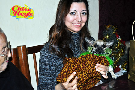 Ese regalito era un bonito sueter tejido, hecho por mi tía, color café con mostaza. De hecho el sueter verde que trae puesto también lo hizo mi tía jaja