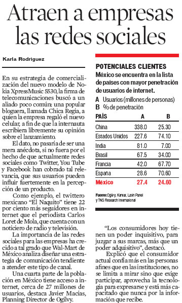 El 3 de diciembre de 2009, me nombraron en un artículo en el periódico Reforma en la sección de Negocios, acerca de la estrategias comerciales con las redes sociales y blogs.